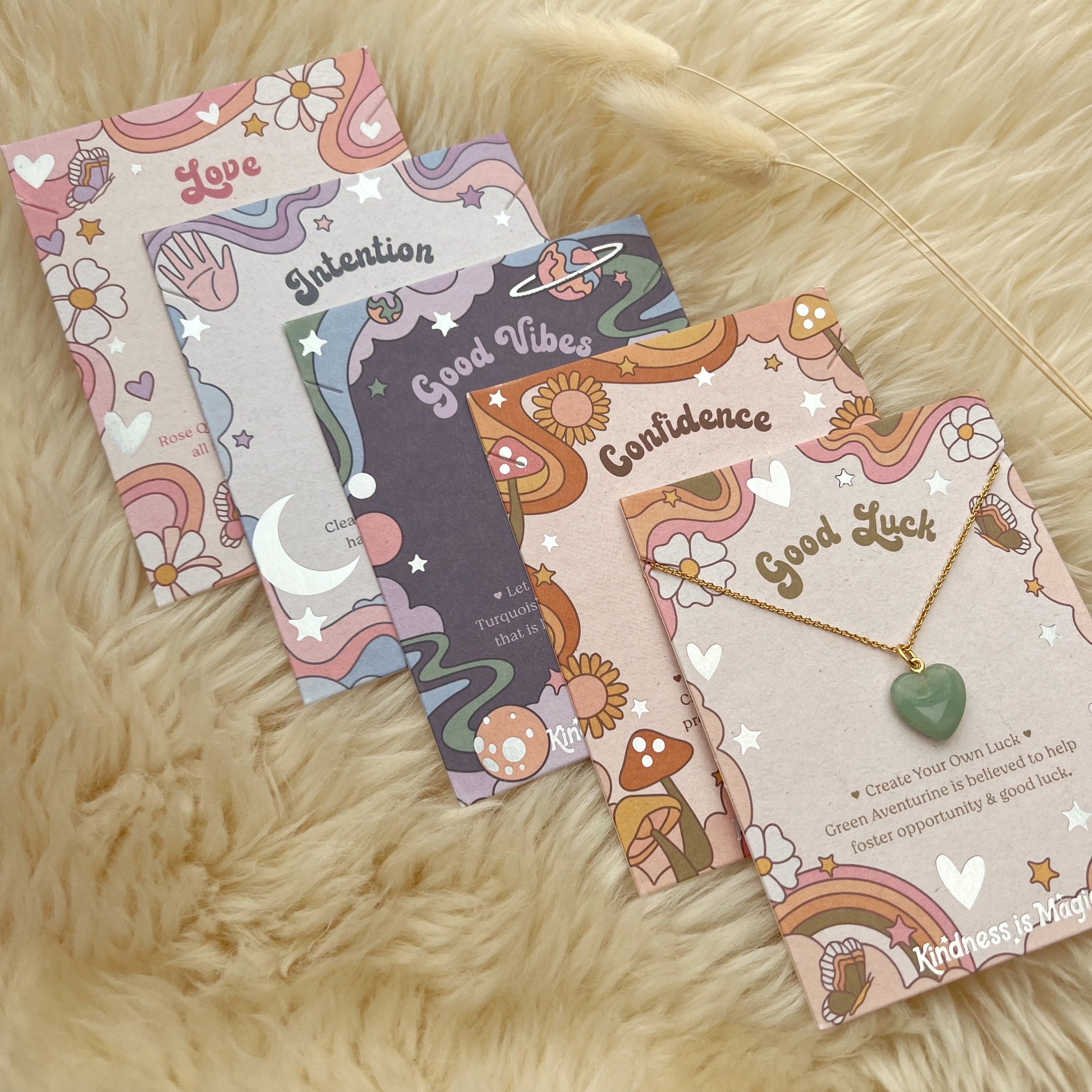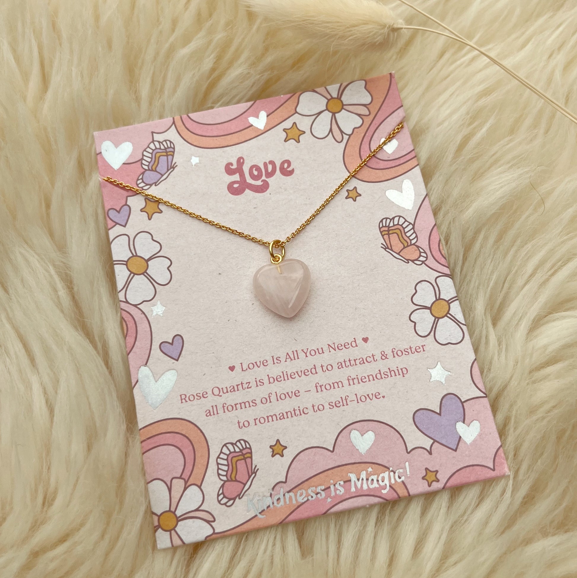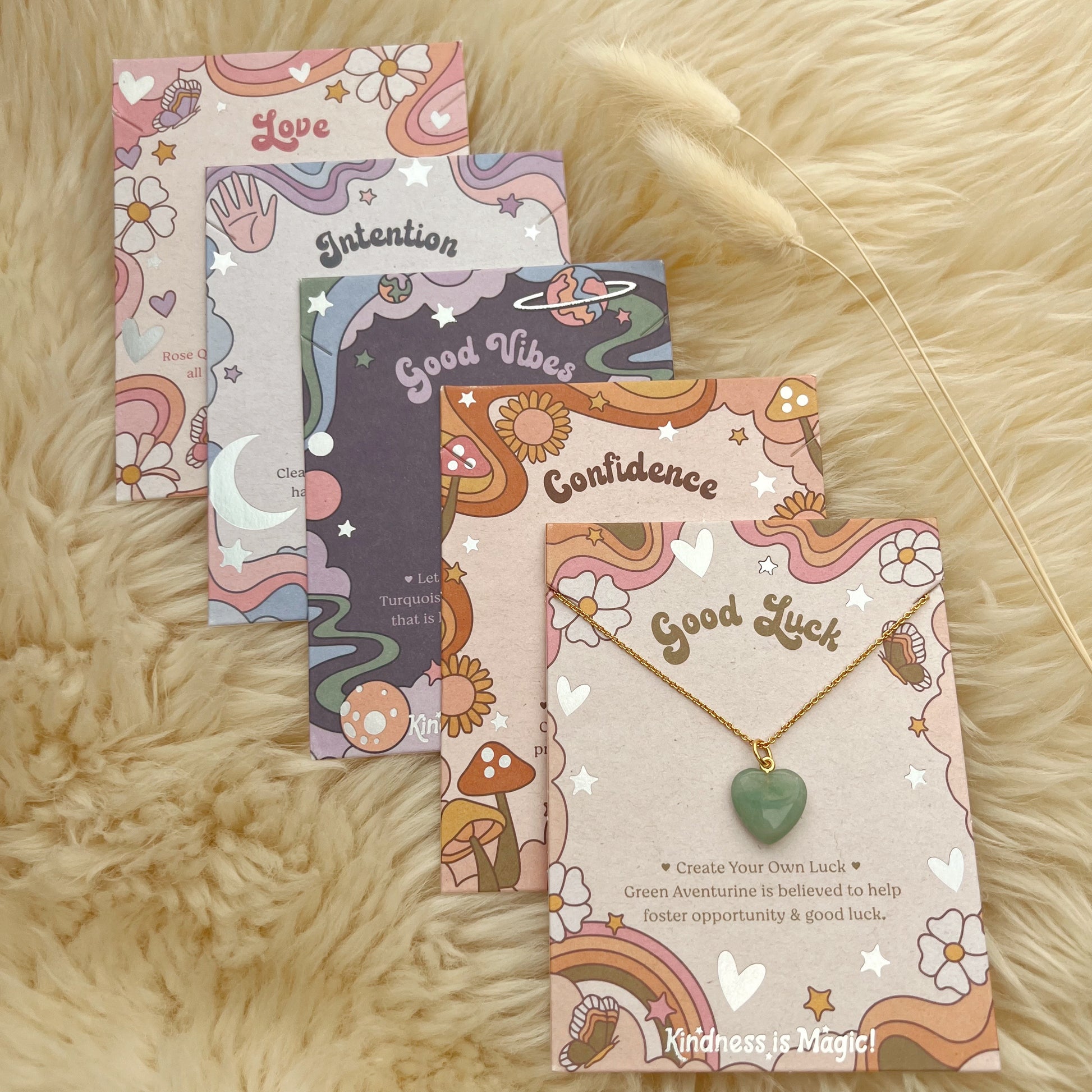 Semiprecious heart gemstone necklaces are thoughtful gifts for yourself or loved ones ♡ Gemstones have been selected for their properties, believed by many dating back to ancient civilizations. Choose what is most meaningful to you & try to channel the stone's energy :) Thoughtfully packaged on special cards that highlight these properties & a gift pouch making these the cutest little gift! Available in gold or silver.